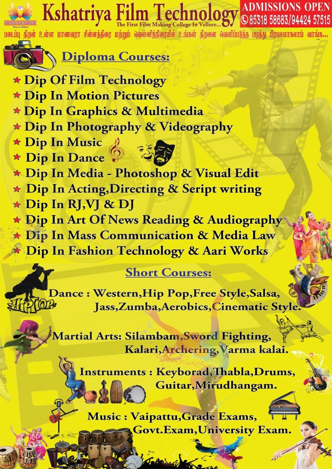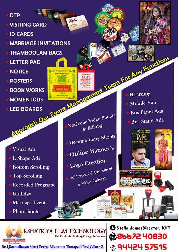 Kshatriya Film Technology also nurtures young talents through its Junior College, offering early training in dance, music, martial arts like Silambam, and cultural arts from the age of three. Many students have showcased their talents on leading platforms such as Vijay TV, Sun TV, Zee TV, and Pudhiya Thalaimurai. With strong placement support, scholarships for socially active and differently-abled students, and a mission rooted in social responsibility, Kshatriya Film Technology stands as a launchpad for creative dreams.